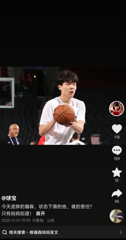 2025-11-03 19:55:57疑似杨瀚森妈妈发声:瀚森虚胖状态下滑谁的责任?只有妈妈知道!