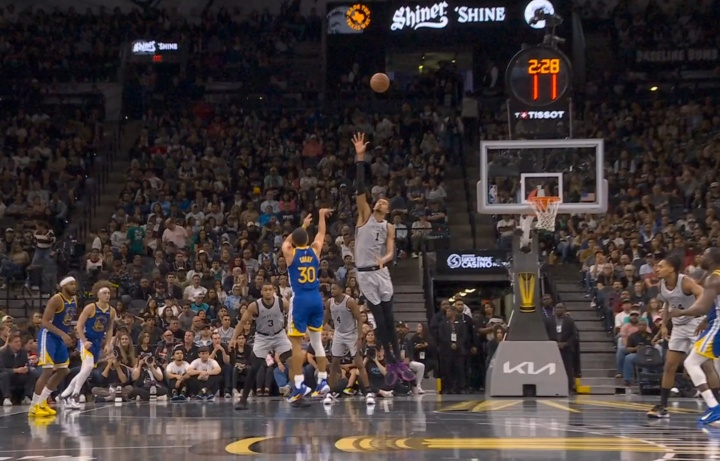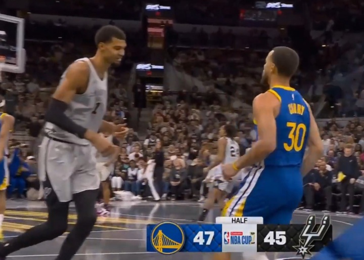2025-11-15 16:07:29想起一些不好的回忆……库里迎着文班撤步三分 文班颇有些无奈啊