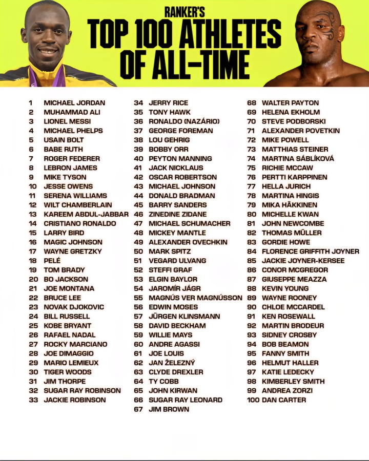 2025-11-02 16:19:59足坛仅梅西前10!外媒排历史百大运动员:梅西第3,C罗14,贝利18
