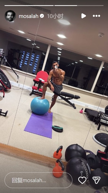 腹肌抢镜,萨拉赫社媒晒健身房训练照